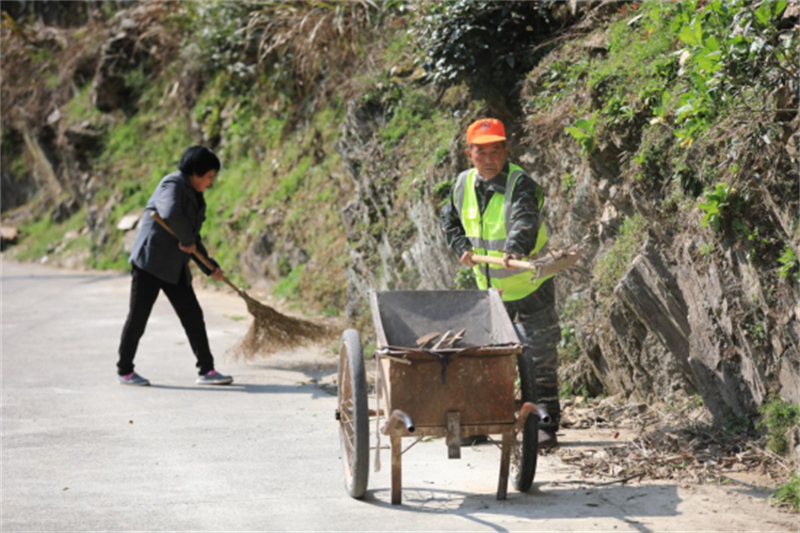 每天天刚亮,王诗进就身着橘黄色护路服,扛起铁锹,握着扫帚出门了。身后,老伴王运仙推着独轮车,步步紧跟。一个铲石,一个推车,沿路清理石子、杂草,风雨无阻。他始终坚持着自己定下的工作标准:天气好坏一个样,白天晚上一个样,身体好和不太好一个样。