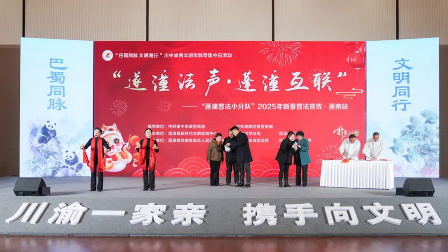 这是蓬潼两地文明实践融入基层法治建设的缩影。讨薪维权、土地纠纷、婆媳矛盾……一年来,两地已化解30余起矛盾。在法治宣传上,他们还将潼南川剧、蓬溪舞狮等非遗融入普法,创作出《郭靖说法》相声、《法治三句半》普法脱口秀以及以革命先烈为原型编排舞台剧等普法节目,让法治宣传既有“泥土味”又有“文化味”。