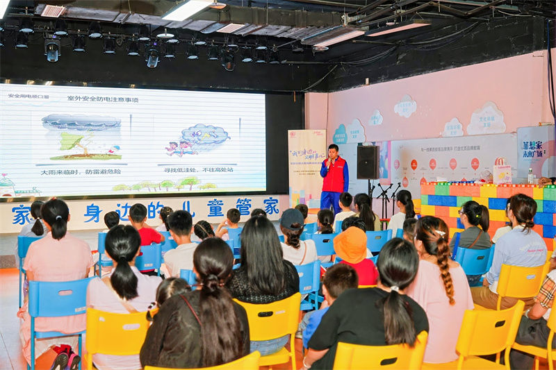 14时整,“安全健康科普”微课堂准时开始。董存一上来就抛出了几个贴近生活的问题:“电表箱旁能否堆放杂物?”“充电器能否长期插电?”……这些提问迅速吸引了大家的注意力。随后,他借助生动有趣的科普动画为在场亲子家庭讲解了安全用电知识。