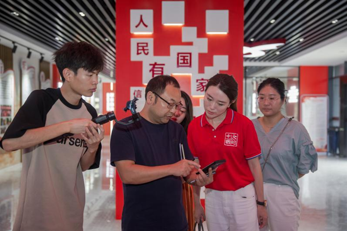 7月24日,游客正在参观湖北省荆门市东宝区非物质文化遗产展示馆。新华网 钟奕 摄