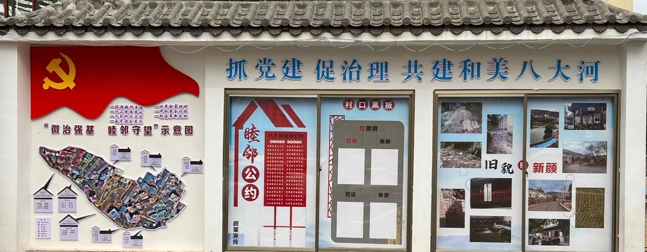 一张网格,邻里睦。八大河村在镇、村、组三级网格体系的基础上,通过村民议事活动,划分出“睦邻微家”85个,形成了“组网合一、微家联户”的格局。在推选睦邻微家“守护人”的同时,发动乡贤能人、热心人士、活泼大姐等热心群体,他们既是经常串门聊天、掌握邻里困难,为镇村两级解决民生难题出谋划策的“热心肠”,又是积极发动邻里住户参与人居环境整治提升、群众议事等活动的“司号员”,还是广泛宣传政策法规、睦邻公约的“好声音”,在群众齐参与的努力下,邻里守望、互相帮助的和谐氛围已经成为了八大河村一道亮丽的风景线。