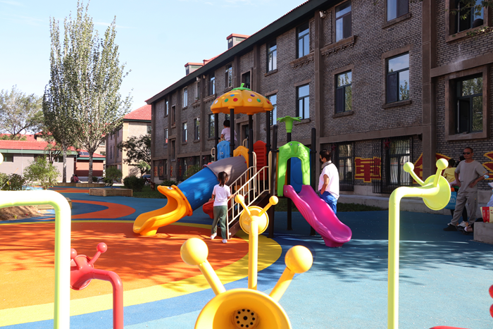 10月20日,青山区自由路二号街坊的居民带孩子们在社区广场嬉戏玩耍。(包头市委宣传部供图)