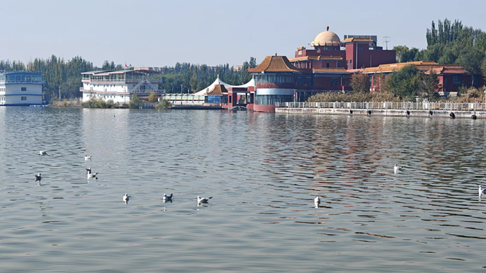这是10月21日拍摄的南海湿地公园内的天鹅。(包头市委宣传部供图)