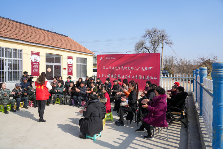 2023年2月16日,山东威海文登营镇大店村村民在村中心大院内参加理论宣讲活动。新华社记者 朱峥 摄