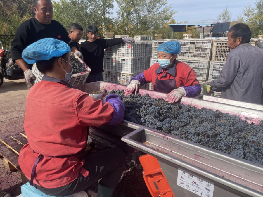 山葡萄收获季节,赤峰市喀喇沁旗马鞍山村村民正在收购山葡萄。新华网发(赤峰市喀喇沁旗河南街道工作人员 张智博 摄)