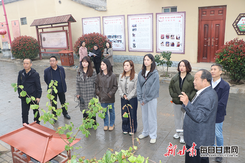 10月19日,天水市麦积区新阳镇胡家大庄村村委书记胡雲向采访组介绍该村历史名人。记者郭林玉 摄
