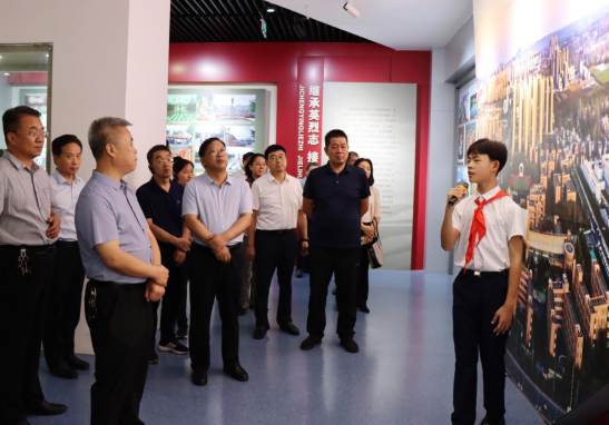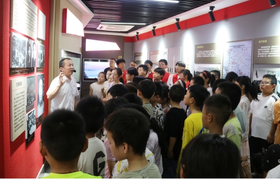 西峡县大学生志愿者带领着孩子们参观红色教育基地。南阳市文明办 供图