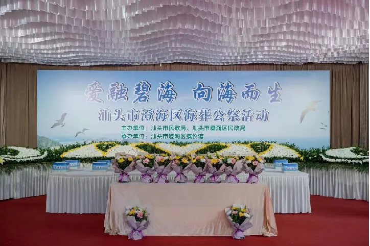 2019年,澄海祥安墓园建成22亩的海葬纪念园,包括海葬纪念碑、生命纪念墙“垂芳录”等,让丧属寄托哀思。此后,澄海又在广东省率先出台骨灰海葬管理制度,并制订海葬活动标准化流程,推动骨灰海葬规范化发展。